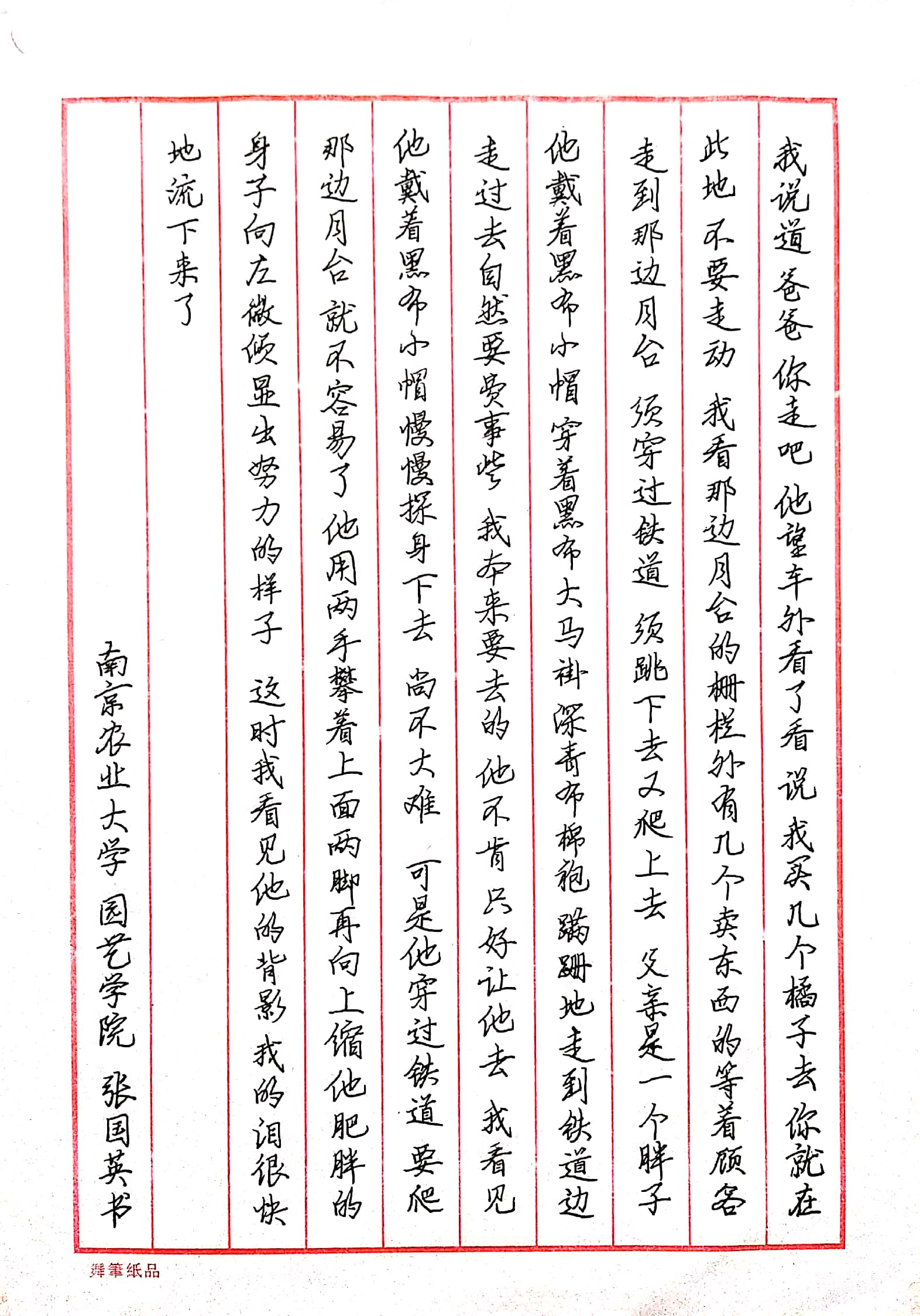 硬笔一等奖:闫家谊《父亲写的散文诗》