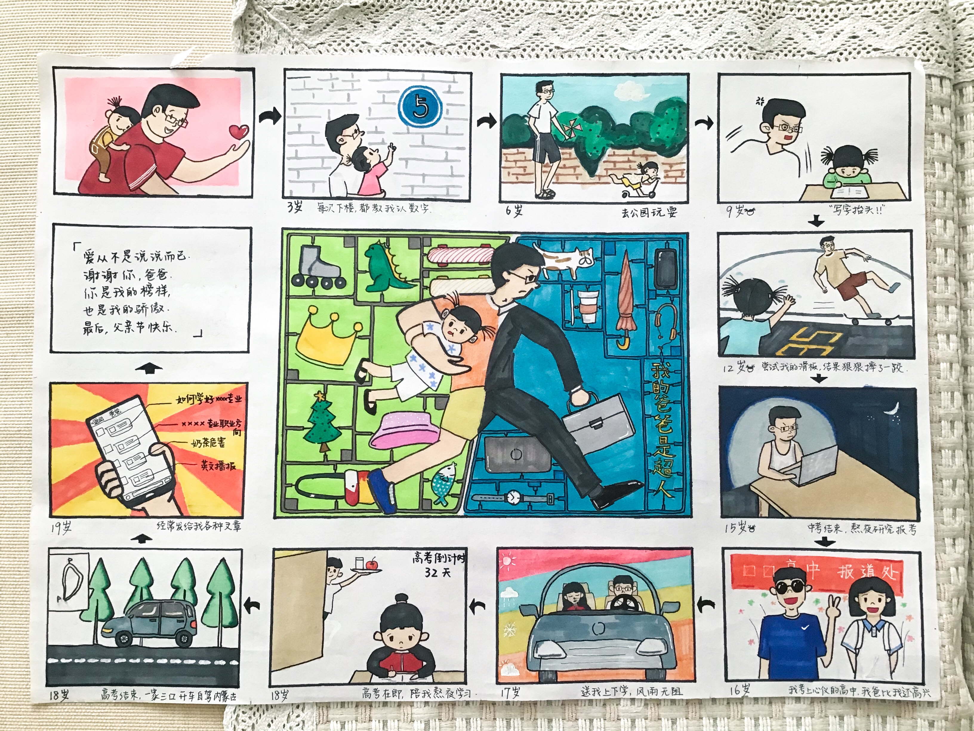 父爱,就像一杯淡淡的清茶,留有的清香让人回味。新冠疫情当前,举国人民众志成城、团结一心组成“抗疫长城”,打响了一场无硝烟的战争。很多抗疫“战士”,也是为人父者。在父亲节到来前夕,校关工委组织学生社团——德馨书画社,开展了“寸草心生,依依向父”主题书画比赛活动,旨在为提高同学们的艺术修养,让同学们在活动中感受父爱、感恩父亲,促进家庭关系和谐,促进身心健康成长,培养责任感和担当。