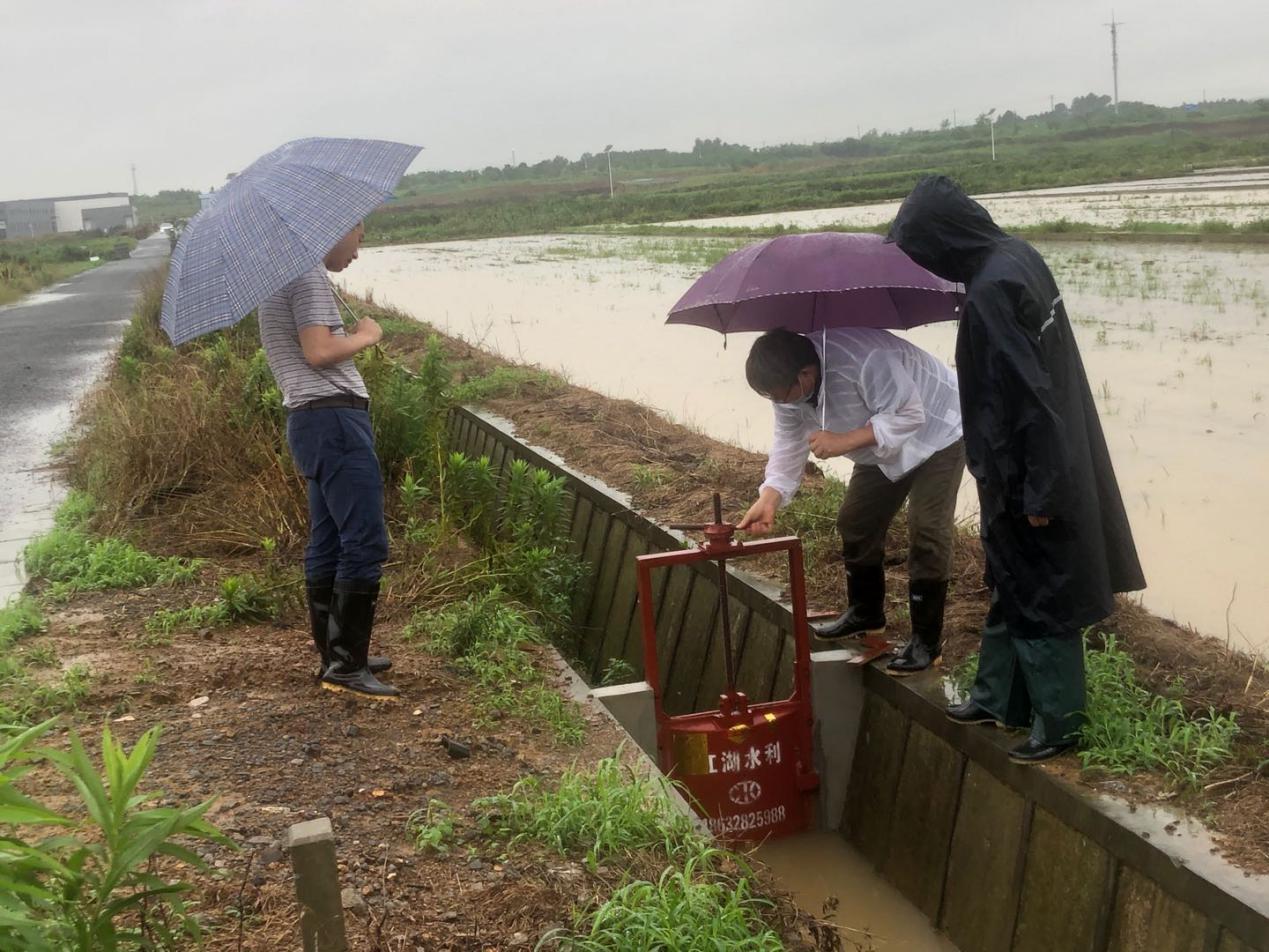 7月17日,大雨如注,实验室与基地处处长陈礼柱一行重点查看了中心湖、防虫网室降排水,东西区高标准试验田等受灾严重地段,对泵房、重要闸口和泄洪渠进行隐患排查,并提出整改措施和要求。他再三叮嘱防汛工作一定要实实在在,看雨情、观水位、疏堵点、重排涝缺一不可。