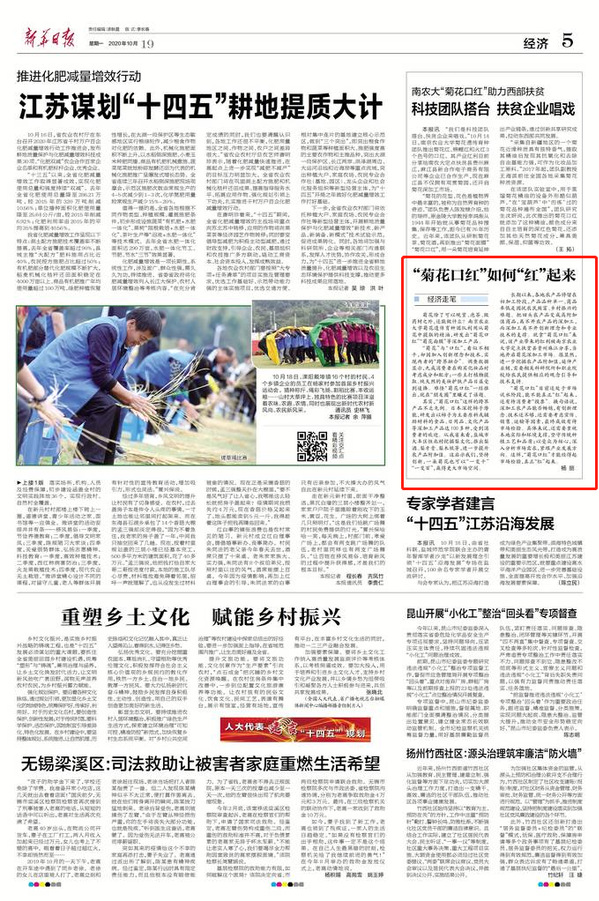其实,“菊花口红”这样的跨界产品不乏先例。日本深挖柿子潜能,研发出以柿子为主要原料或辅助材料的食品、日用品、文化产品等深加工产品达100多种,受到消费者的欢迎。从我省来看,盐城市大丰区恒北村挖掘梨文化,推出梨酒、梨牙膏、梨木梳等,进一步提升农产品附加值。这启示我们,坚持创新,一朵菊花也可以“一变十”“一变百”,赢得更大市场空间。