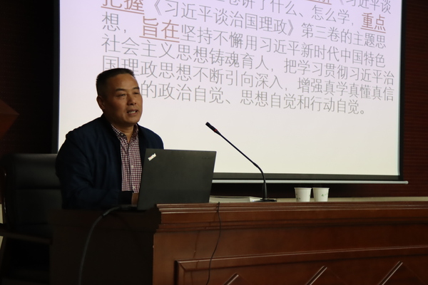 10月23日的宣讲会上,吴国清教授以作了题为《学好〈习近平谈治国理政〉第三卷,为实现“两个一百年”奋斗目标而不懈奋斗》的专题报告,报告从《习近平谈治国理政》第三卷的主要内容、主题思想、逻辑结构等方面,阐述了第三卷的原创性、时代性以及与习近平新时代中国特色社会主义思想紧密关联,指出了第三卷对新时代高校铸魂育人的指导意义。