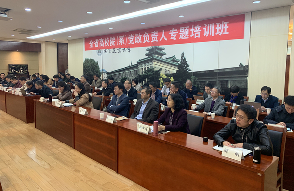 11月10日,省委教育工委举办全省高校院(系)党政负责人专题视频培训班,我校各学院近50名党政负责人在金陵研究院参加了在线培训。