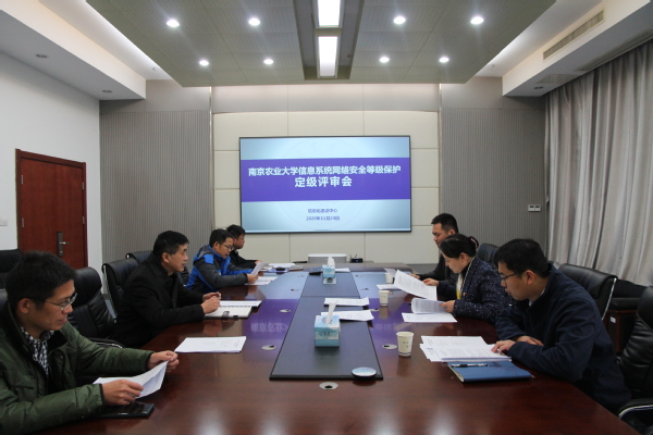 11月24日下午,信息化建设中心在理科南楼一楼会议室组织召开信息系统网络安全等级保护定级评审会。与会的专家有江苏省电教馆副馆长金玉,南京市公安局网安支队中队长刘志跃、我校宣传部部长刘勇,会议由信息化建设中主任查贵庭主持。