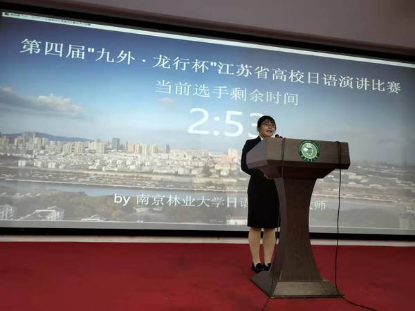 11月28日,第四届“九外·龙行杯”江苏高校日语演讲比赛举行。南京农业大学外国语学院李佳萱同学经过激烈角逐,顺利进入决赛,最终获得一等奖,其指导老师为周萌、藤波喜代美。南京农业大学外国语学院副院长游衣明代表中国日语教学研究会江苏分会致辞。