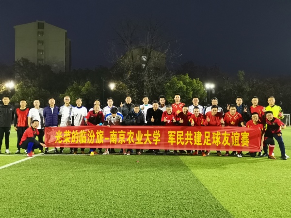 11月28日,临汾旅足球队与南京农业大学教工足球队在卫岗校区足球场举行了一场“军民共建足球”友谊赛。比赛特别邀请原临汾旅政治部主任,现南京陆军指挥学院政治部主任王悦参加,校党委人武部部长崔春红至现场助阵。最终以总比分4:4结束比赛。