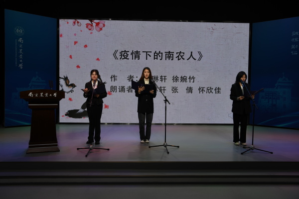 闭幕式上准备了特别节目:《疫情中的南农人》,由朗读大赛中获奖的3位同学朗诵。