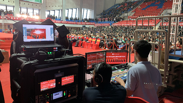 为做好此次直播工作,信息化建设中心成立直播工作组,悉心准备、通力合作,认真做好直播前的调试工作,布置线路、架设高清摄像机、调试无线网络、提前在微信公众号推文预热,文章阅读人数过万。工作人员现场切换,全面、立体地展现毕业典礼的实况,并及时对数据进行拷贝处理、确保直播万无一失,顺利地完成了2021届毕业典礼暨学位授予仪式直播工作。