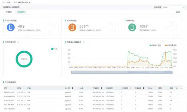 本次毕业典礼采用全高清多机位全程直播,通过将现场五台高清摄像机信号、现场大屏视频等画面实时切换后,经视频编码器向南京农业大学直播平台、哔哩哔哩、官微推(拉)送视频流,为用户提供了PC端及移动端的多平台直播通道,方便用户实时收看。据统计,本次直播观看人次达72000余次。同时,为保障毕业生能够在现场进行微信、微博等新媒体互动,现场还架设了16台无线AP,实现典礼现场无线网络全覆盖,无线终端使用峰值达700余人。
