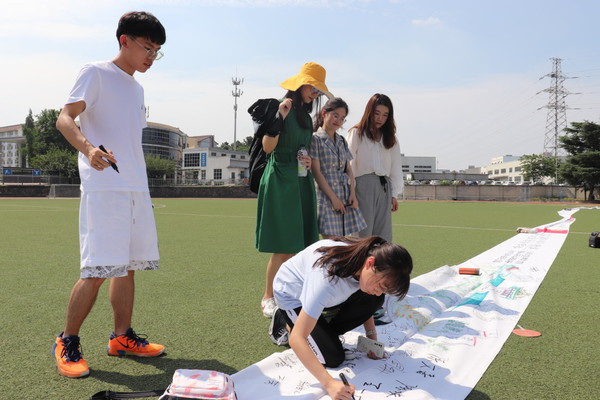 100名经管学子围绕“建党百年”和“百年农经”,共同绘制百米长卷,献礼百年。画作追忆“红船启航”“长征会师”“开国大典”“改革开放”和“脱贫攻坚”的历史进程,描绘出中国共产党的初心本色。串联“农经建系”“农经招生”“早期田野调查”“麻江调研”和“乡村振兴”等时间节点,唤醒历代农经人的使命情怀。