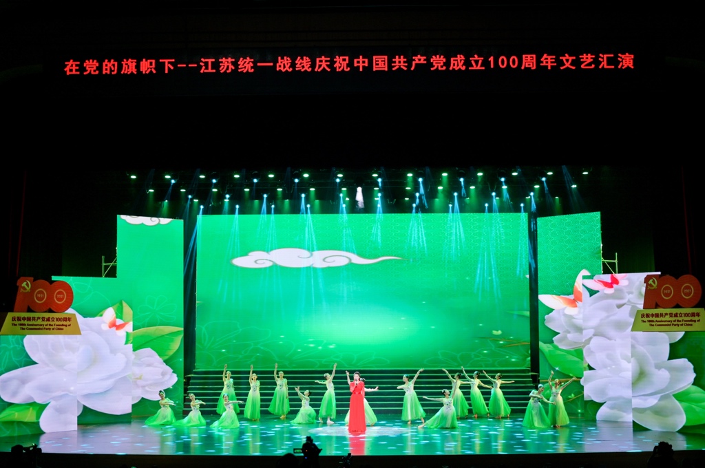 6月21日晚,由中共江苏省委统战部主办,各民主党派省委、省统战系统有关单位以及各设区市委统战部等35家单位协办的“在党的旗帜下——江苏统一战线庆祝中国共产党成立100周年文艺汇演”在南京保利大剧院隆重举行,我校大学生舞蹈团受邀参加演出。江苏省委常委、省委统战部部长杨岳,副省长惠建林,民革省委主委、副省长陈星莺,民进省委主委、省政协副主席朱晓进以及全省统一战线各领域代表人士等1600余人观看了演出。