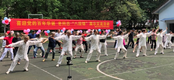 六月的校园,阳光明媚,繁华似锦,绿荫如海,到处充满生机勃勃的景象。6月29日上午,学校老年体协、浦口校区管委会共同举办“喜迎党的百年华诞,老同志‘八段锦’展示交流活动”。