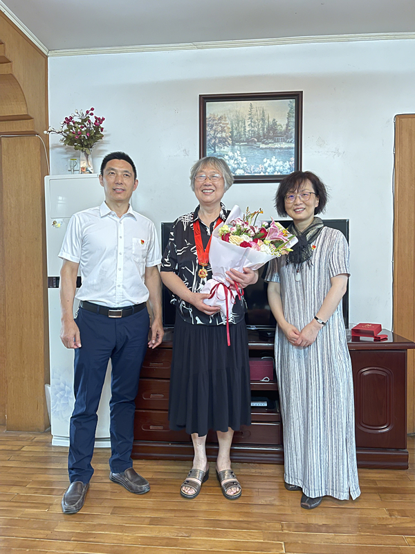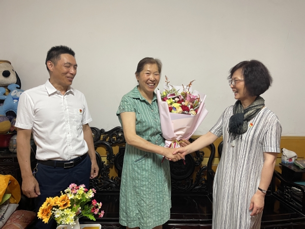 6月30日上午,校工会主席余林媛先后来到工会退休老党员贾翠芳、季献秋家中慰问,向他们转达党中央的关怀和温暖,代表学校向他们致以诚挚的问候和美好祝福,感谢他们的辛勤工作为学校发展作出的贡献。余林媛还为季献秋老师佩戴了“光荣在党50年”纪念章。