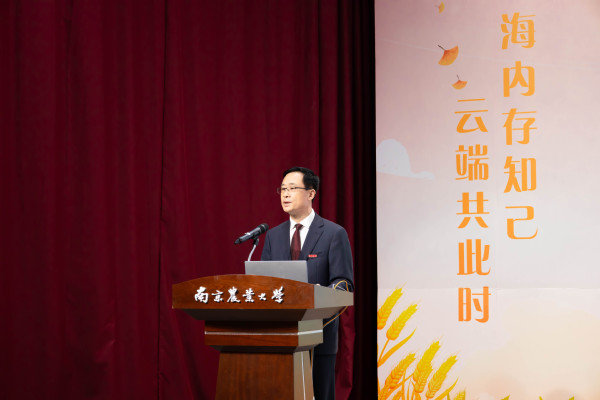胡锋代表学校向线上、线下校友致以亲切问候。他表示,网络弥补了新冠疫情造成的缺憾,欢迎校友们把自己对母校的情谊实时打在弹幕上。不断壮大的校友会组织,既是校友与学校的纽带和桥梁,也为校友们提供了相互扶持、资源共享的互动平台。他真诚的邀请海内外的校友们明年120周年校庆重返母校、共襄盛举,一同在紫金山下忆往昔,点将台前论英雄,绿水湾边看今朝。