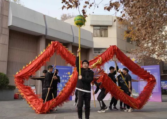 龙狮协会用威风凛凛的舞龙节目《云起龙骧》,让同学们欣赏到中国舞龙的文化精神。