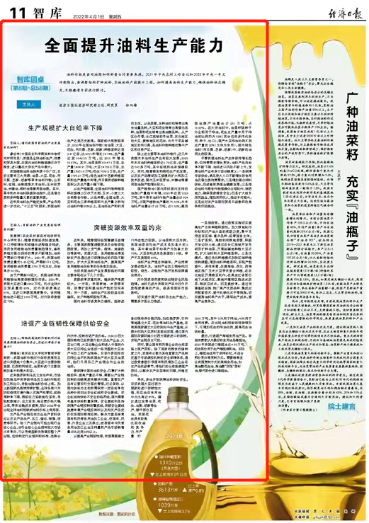 油料作物是食用油脂和饲料蛋白的重要来源。2021年中央农村工作会议和2022年中央一号文件都指出,要调整结构扩种油料,实施油料产能提升工程。如何提高油料生产能力,确保油料供应稳定,本期邀请专家进行探讨。