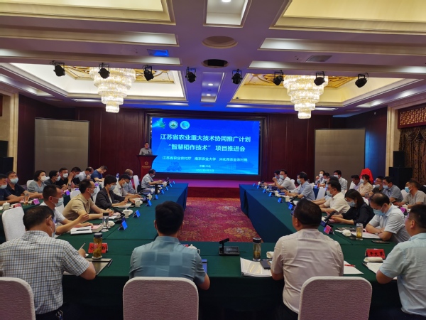 6月2日下午,南京农业大学在兴化市召开江苏省农业重大技术协同推广计划“智慧稻作技术”项目推进会暨兴化先行县与智慧农业建设研讨会。全国政协常委、民盟中央副主席、南京农业大学智慧农业研究院院长曹卫星,江苏省农业农村厅一级巡视员蔡恒,南京农业大学副校长丁艳锋出席会议。江苏省农业机械技术推广站、泰州市农业农村局、兴化市委市政府及南京农业大学相关部门负责同志及农技推广系统专家,新型农业经营主体及我校智慧稻作技术专家参加会议。