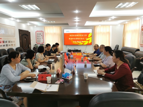 7月6日上午,我校离退休工作处党工委书记、处长梁敬东带领处领导班子成员及各科室人员来到江苏省农科院退休职工管理处,调研离退休工作,商谈共建事宜。