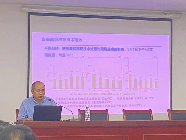 据江苏省水稻产业体系岗位专家、南京农业大学李刚华教授介绍,近年来极端气候频发,2021年6月至8月中旬长期阴雨,通过全省上下政产学研协作,最终夺取了水稻丰收。今年与去年相反,6月份以来持续高温,前期高温对水稻总体有利,但水稻进入拔节孕穗期之后,对高温的敏感性越来越高,尤其近阶段的持续高温,对水稻生产是重大挑战。