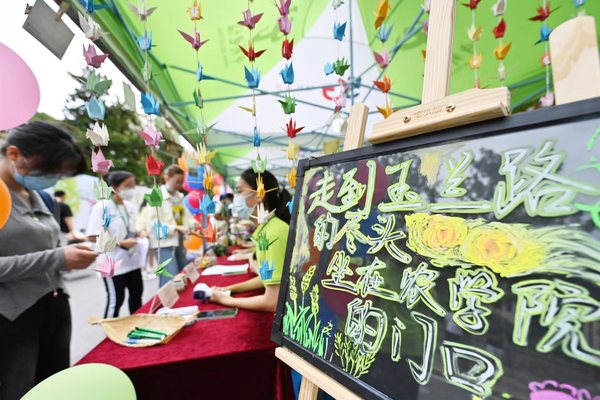 水果、黄瓜、绿色草皮、菜种……9月3日至4日,南京农业大学卫岗、浦口校区用满场“绿色”迎接4653位本科新生、3938名研究生新生的报到。