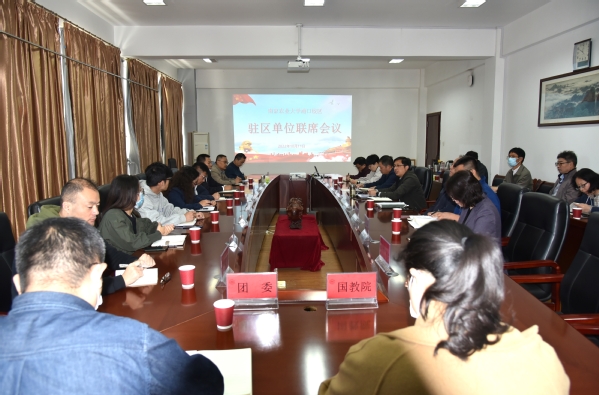 10月11日上午,浦口校区驻区单位第二次联席会议在育贤楼C302召开。浦口校区管委会相关负责人,工学院、人工智能学院、信息管理学院、公共管理学院,驻区教务处、学工处、实验室与基地处、计财与国有资产处等机关部门联络员参会,管委会综合办、安保办、后保办相关人员列席会议。