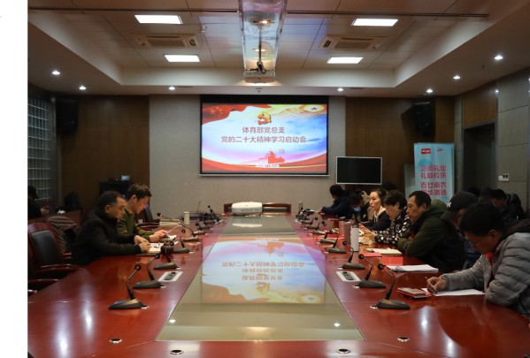 11月30日下午,体育部党总支在体育中心会议室召开贯彻党的二十大精神学习启动会。