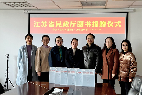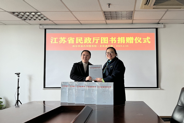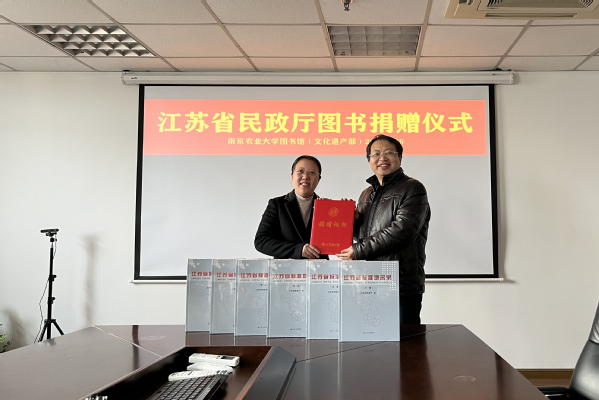 2月16日下午,江苏省民政厅划地名处处长孙燕一行赴南京农业大学图书馆(文化遗产部),进行《江苏省标准地名录》全套图书捐赠仪式。