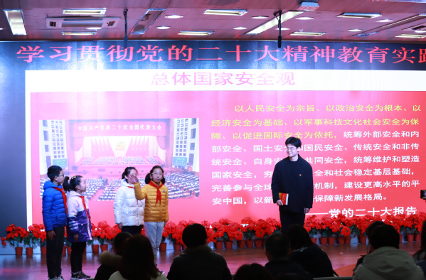 研讨会上,南农大实验小学数学党小组采用师生对话形式,用通俗易懂的语言阐述了学习与党的二十大精神之间的关系。语文党小组以情景剧形式,讲述了“总体国家安全观”的丰富内涵和核心宗旨。综合党小组由学生熟悉的“红领巾奖章”争章活动引入,结合新时代十年发展中国家取得的成绩,引导师生领会“六个必须坚持”的立场观点和基本方法。幼儿园党小组从幼儿熟知的交通规则入手,将国家运行比作城市交通,让“全面依法治国”入脑入心。