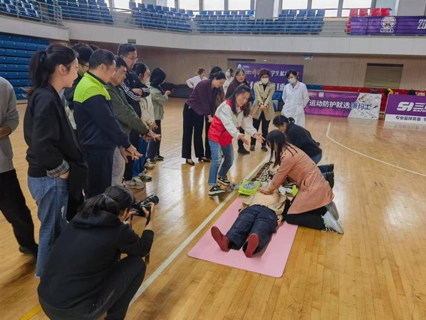 在校体育馆,参训人员在培训导师的指导下进行分组模拟练习。参训人员纷纷表示,此次培训收获很大,通过学习掌握有效急救技能,以便于更好地为广大师生和群众服务。在红十字会老师的专业指导下,本次参会学员顺利完成培训,均取得应急救护员证。