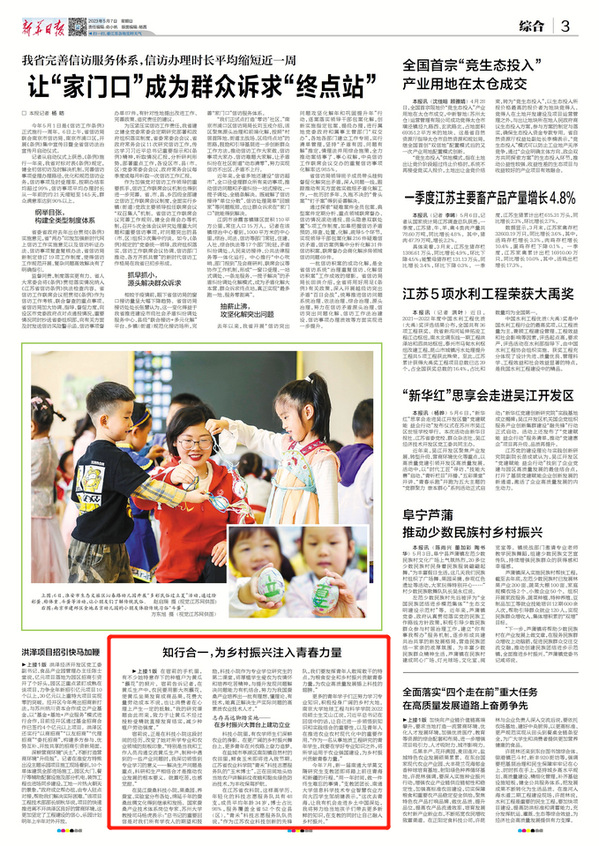 近日,中共中央总书记、国家主席、中央军委主席习近平给中国农业大学科技小院学生回信,寄语同学们厚植爱农情怀,练就兴农本领,在乡村振兴的大舞台上建功立业。殷殷关怀暖人心,谆谆嘱托鼓干劲,总书记的回信让江苏高校师生和科研人员倍受鼓舞。在江苏高校的28个科技小院和更加广袤的田野上,一个个科研团队挥洒汗水,甘愿“自找苦吃”,致力于让每一亩土地都有科技支撑,为加快推进农业农村现代化贡献力量。