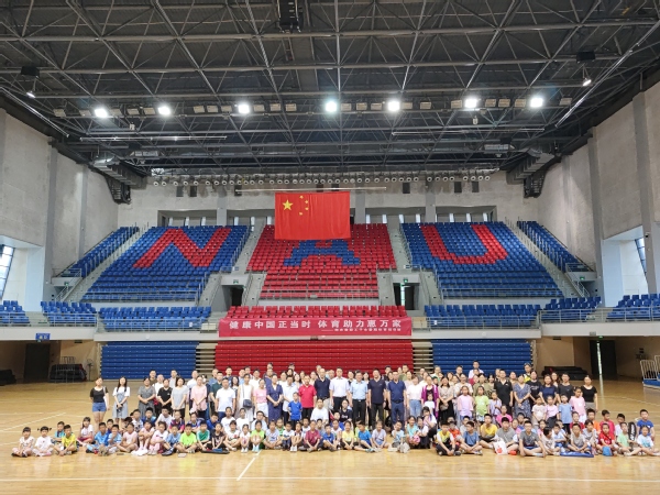 为深化“我为师生办实事”实践活动,关爱我校教职工子女成长,丰富孩子们暑期文体活动,7月10日,体育部在体育中心主馆举办“‘健康中国正当时 体育助力惠万家’——2023年暑期教职工子女体育培训班”开班仪式。校工会主席戴廷波,校党委办公室副主任刘志斌,体育部党总支书记、主任陆东东,副书记许再银,以及来自全校各单位的200余名教工代表和子女参加开班仪式。