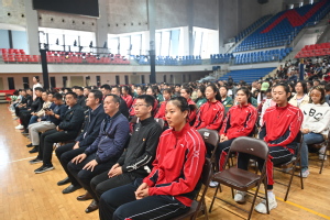 校党委副书记刘营军出席活动并致欢迎词。江苏省体育局训练中心主任马兆森简要介绍了江苏女排的建设情况,特别是在刚刚结束的杭州第19届亚运会上,江苏女排3名队员——龚翔宇、刁琳宇和吴梦洁代表国家队参赛,助力中国女排成功卫冕亚运冠军的情况。他表示,江苏女排走进南农是充分发挥优秀运动员的示范引领作用,帮助我校搭建了集专业性与趣味性于一体的体育活动平台,是深入贯彻体教融合政策的生动和具体体现。希望通过弘扬女排精神,促进教育、体育优势互补,提升队员训练和学校体育的发展水平。