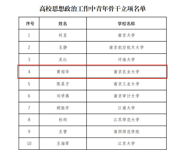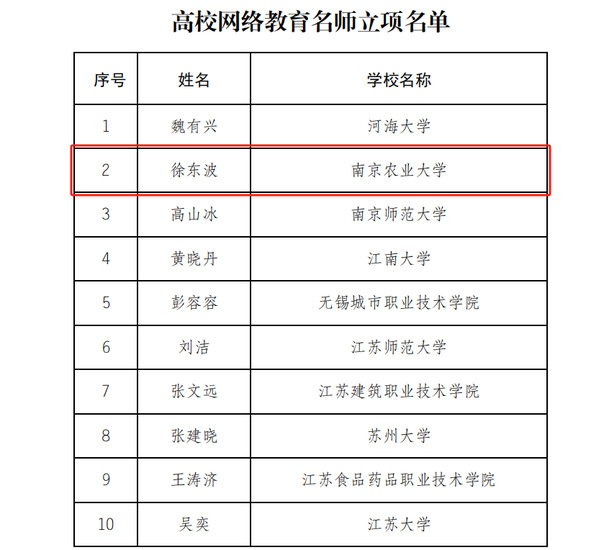 近日,江苏省委教育工委、省教育厅公布第二批江苏高校思想政治工作质量提升工程建设项目遴选结果,我校“‘保护母亲河 秦淮环保行’——习近平生态文明思想融入实践育人的研究与应用”获批高校思想政治工作精品项目立项,黄绍华获批高校思想政治工作中青年骨干立项,徐东波获批高校网络教育名师立项。