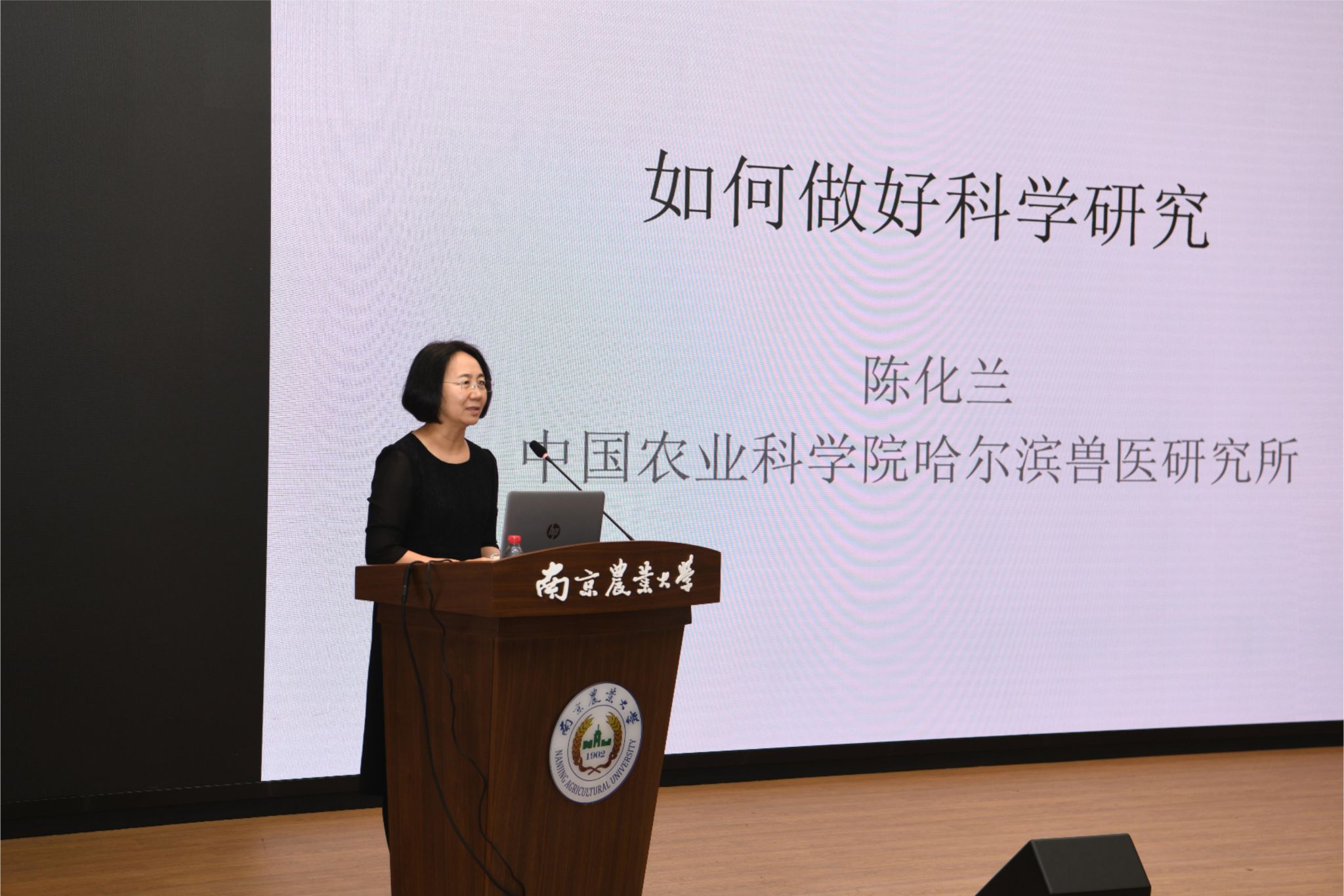 陈化兰讲授《如何做好科学研究》院士公开课,她首先高度评价了罗清生为我国兽医教育事业作出的突出贡献,就兽医人如何做好科学研究,她结合自己在禽流感病毒研究方面深耕近30年的研究经历,强调做科研要专注、自信、自治;就如何高效做科研,她强调研究选题要精准,方向要稳定,同时要正确对待项目申请;就研究生培养,她指出要充分尊重学生,注重培养学生的大局意识和合作精神,把学生当做宝贵的助手,亲密的合作者和最重要的同行。她勉励青年教师和学子要传承老一辈兽医精神,继往开来,不懈奋斗,用知识和创新推动我国兽医事业不断发展。