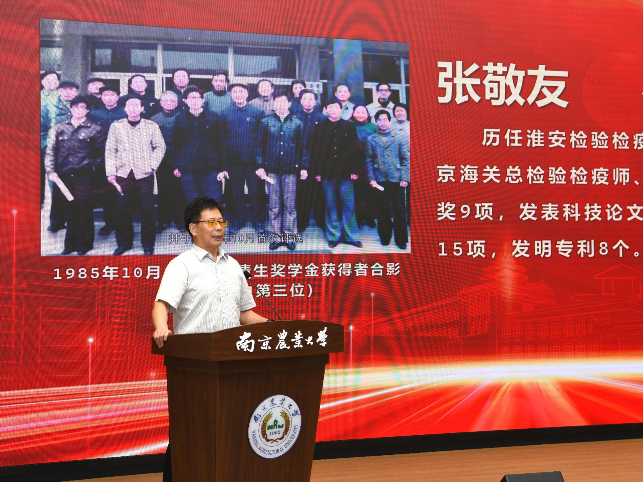 会上举行了罗清生奖学金颁奖礼。张敬友作为首届“罗清生奖学金”获得者表达了对先生的崇敬之情,回顾了自身在罗清生精神指引下,立足兽医本职,求真务实,坚守国门安全关口的职业生涯故事。