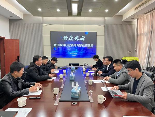 11月30日下午,腾讯教育江苏公司总经理徐晓瑀、商务总监刘国强等一行来我校调研交流,副校长闫祥林,信息化建设中心相关负责同志参加座谈交流。