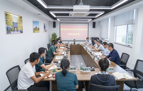 吴荣顺一行听取了三亚研究院工作汇报和相关调研内容的专题汇报,并与三亚研究院师生开展座谈。吴荣顺表示,三亚研究院作为学校创新发展的先锋力量,以培养知农爱农懂农为农新型人才为根本任务,以关键技术成果结合海南区域特色落地转化为核心使命,为积极推动科教融汇、产教融合,加快推进“南繁硅谷”建设作出了重大贡献。吴荣顺同时指出,一要坚持党建引领聚力顶层设计,合力赋能。以立德树人为根本,以强农兴农为己任,聚焦“国之大者”,紧密结合当地产业需求,实现党建与业务双融双促,为服务国家战略需求,贡献南农智慧和南农力量;二要夯实基础管理,明确职责权限,完善管理机制。进一步建章立制、完善制度体系建设,规范工作运行机制,不断增强管理队伍的凝聚力和战斗力,严守安全运行、健康发展的底线;三要健全内控机制,加强队伍建设,提升高质量发展水平。形成具有自我造血功能的良性循环机制,加强人才引育的本土化进程,建立校内人才流动机制,加快校地科技创新平台的发展和壮大。吴荣顺希望研究院师生要恪尽职守、履职尽责,坚守踏实肯干的精神,具备机智灵活的能力,同心同德、同舟共济,共同为三亚研究院有力有为、善作善成、出新出彩。