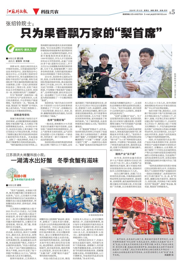 作为“梨首席”,他始终如一致力于将科技与产业需求结合,心系百姓消费需求、不忘带领农户致富增收,“我希望有一天,‘梨业强、梨农富、梨园美’的‘梨园梦’在中国大地上成为现实。”中国工程院院士、南京农业大学教授张绍铃说。