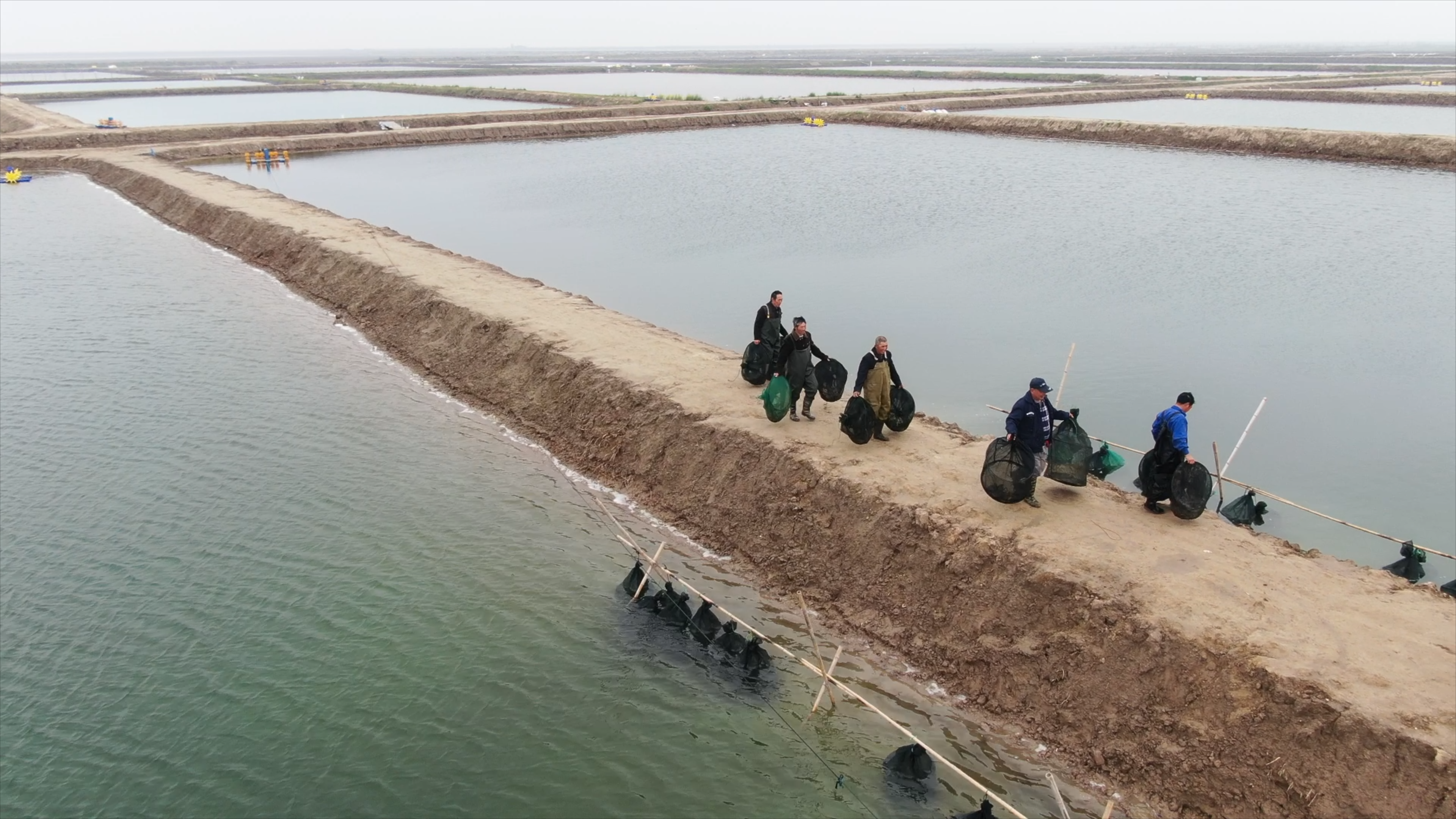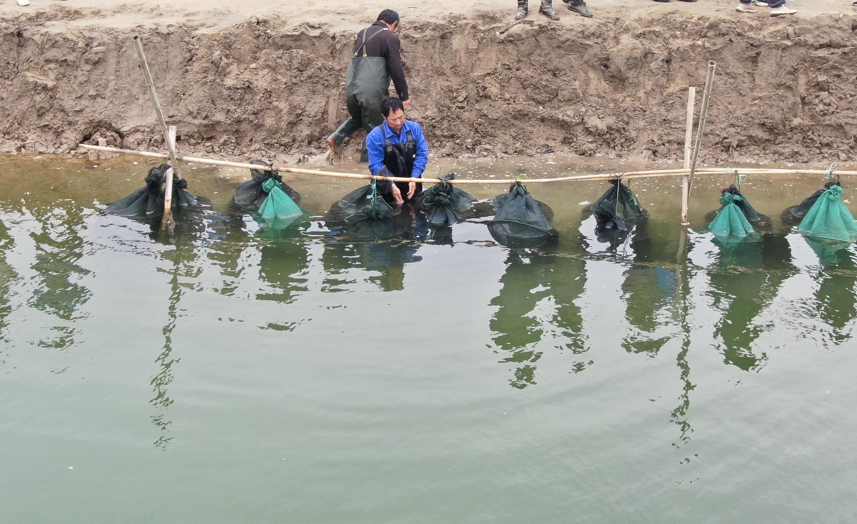 装满国家级新品种“金农1号”的种蟹现场挂笼