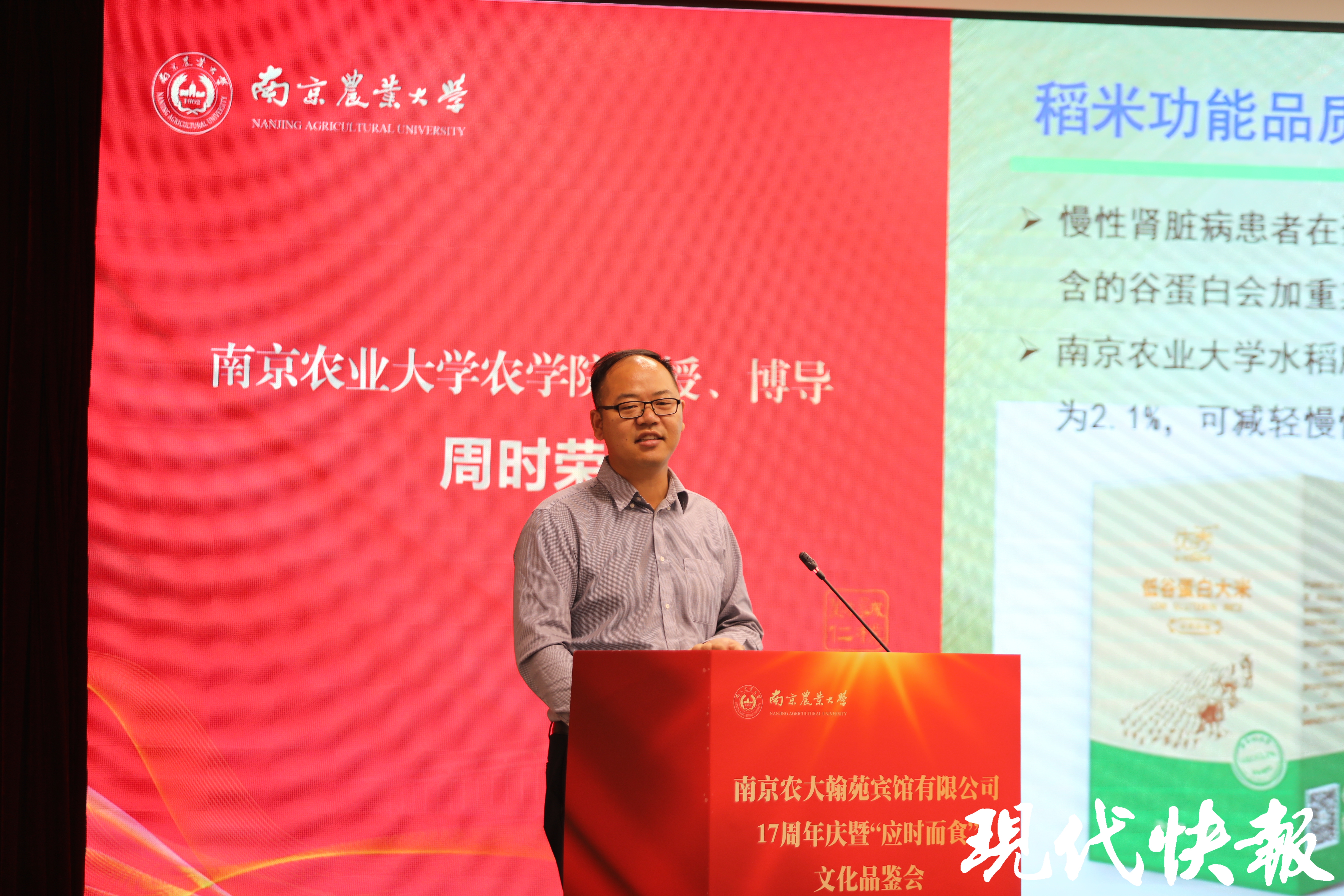 “一直以来,作为学校的学术交流中心,南农大翰苑秉承‘诚朴勤仁'的南农精神与文化砥砺前行。”南京农业大学副校长单正丰表示,百余年来,南农人坚持把服务农业强国、科技强国的战略需求扛在肩头,加快科技成果向现实生产力的转化,今天学校的科技产品走上餐桌,不仅是南农人躬耕传承、敢为人先的科研接力,更是不负强农兴农重托,成就百姓对美好生活的向往。