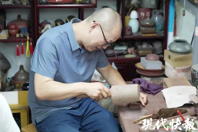 在该校教四楼紫砂艺坊工作室,宗良纲详细讲解了紫砂陶的发展历史、制作工艺以及文化内涵。他现场展示紫砂作品的泥料选择、造型设计、工艺制作、落款艺术等,让学生和家长感受到了这一国家级非遗传统技艺的精湛与独特。