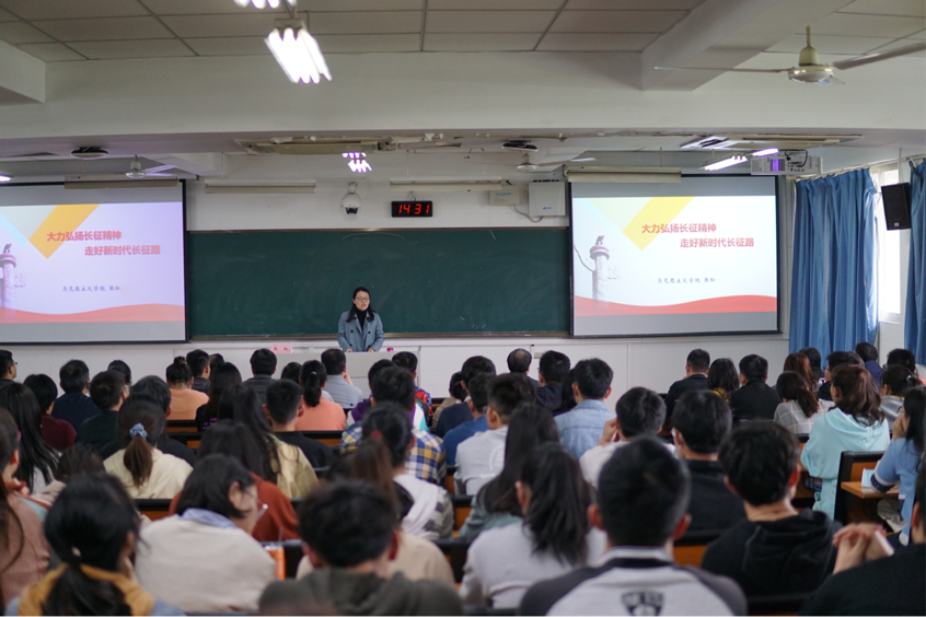 此次党课分为深入领会学习党史的意义、红军不怕远征难、长征精神内涵、走好新时代长征路四个模块。张松为大家讲述了红军长征期间的重要战疫,品读了毛泽东长征诗词的磅礴气势,引导师生深入了解历史事件和历史人物,总结历史经验,铭记历史教训,为工作学习提供了精神指引。