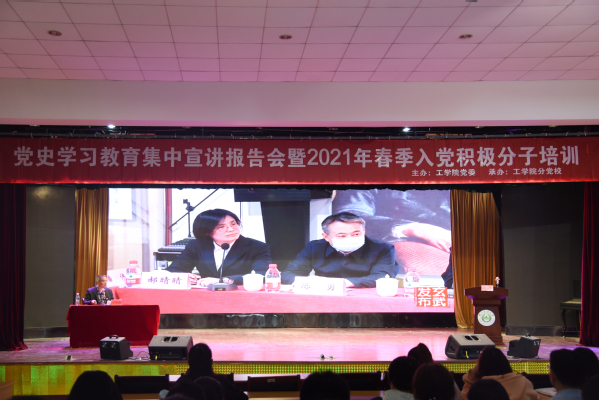 为贯彻落实习近平总书记在党史学习教育动员大会上的讲话精神,在全院范围营造党史学习的浓厚氛围,4月29日下午,工学院邀请校党史学习教育宣讲团成员、马克思主义学院吴国清教授在浦口校区大学生活动中心为全体师生党员及2021年春季入党积极分子学员作“学好党史必修课,全面推进乡村振兴”党史学习专题报告。报告由院党委副书记刘平主持。