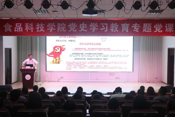 为深入学习贯彻习近平总书记在党史学习教育动员大会上的重要讲话精神,动员学院全体党员师生做到学史明理、学史增信、学史崇德、学史力行,6月2日上午,食品科技学院组织开展党史学习教育专题党课。学院党委书记孙健作题为《历史不会忘记——中国共产党的初心使命和百年担当》专题报告,报告会由学院副院长辛志宏主持,学院全体师生党员参加此次专题党课。