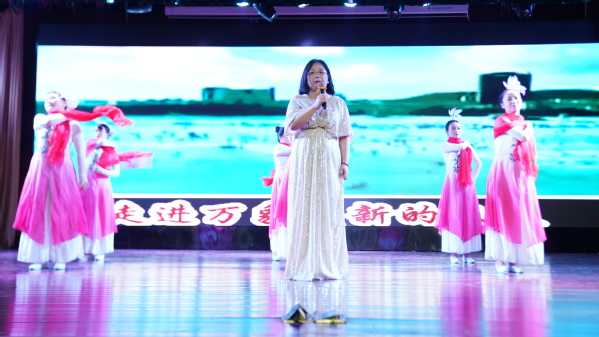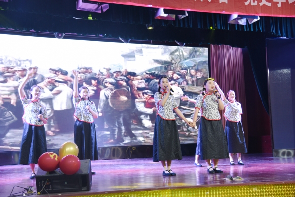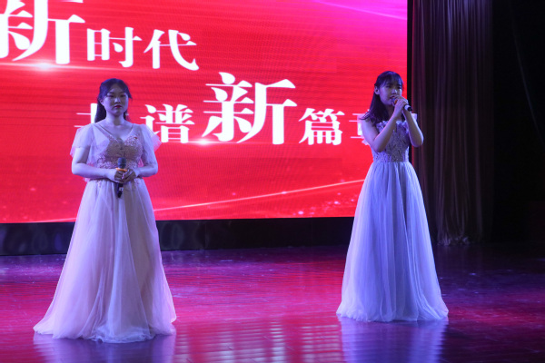 “进入新世纪,党中央团结带领全党全国各族人民加快推动社会主义经济、政治、文化、社会、生态文明建设,不断开创外交工作新局面,继续推进国防和军队现代化建设,加强和改进新形势下党的建设。中国的综合国力日益增强,人民生活水平大幅提高,城乡社会面貌大为改观……”李骅分别从“世纪新章”、“强国梦想”、“复兴路上”三个阶段介绍党的发展历程。一首旋律动人正气、歌词真挚朴实的《走进新时代》,深切表达了人民对国家领导人和中国共产党的爱戴和尊敬之情;一曲节奏欢快、描绘盛世图画的《阳光路上》,刻画出人们热情洋溢的精神风貌和阔步向前的坚定信心;一首《不忘初心》,曲调悠扬,歌词暖心,一句“不忘初心,继续前进,万水千山,最美中国道路”,让人重温红军长征那段艰苦卓绝的峥嵘岁月,道尽对祖国和人民的浓浓深情。师生党员们对这些歌曲的真情演绎,令在场观众产生了时代共鸣。
