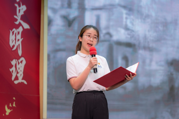 本次竞赛在学校扎实推进党史学习教育走深走实之际,为全校师生带来了一场别开生面的理论学习。通过前期的广泛动员和层层选拔,8支队伍从24支代表队中脱颖而出,来到决赛的现场。决赛共分为“正当其时学党史”“激流勇进竞飞舟”“我将红心向党心”三个环节,以必答题、抢答题和自由情景展示三种形式展开。参赛选手准备充分、信心满满,在激烈的角逐中带领师生一同走进这场充满活力与朝气的党课。马克思主义学院副教授朱娅在点评中表示,“党的历史就是一本最好的教科书,开展党史学习教育,能够汲取蕴藏在党史中的丰富的政治营养,获得珍贵的精神瑰宝。”