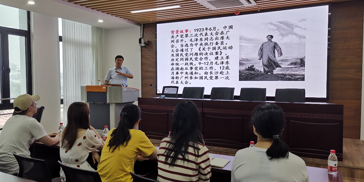 6月18日上午,经济学硕士研究生第三党支部在第三实验楼706召开党史学习教育主题党日,持续推进党史学习教育成效。联系党支部的机关领导干部、学工处副处长李献斌为支部党员上《毛泽东诗词中的红色故事》专题党课并开展座谈交流。