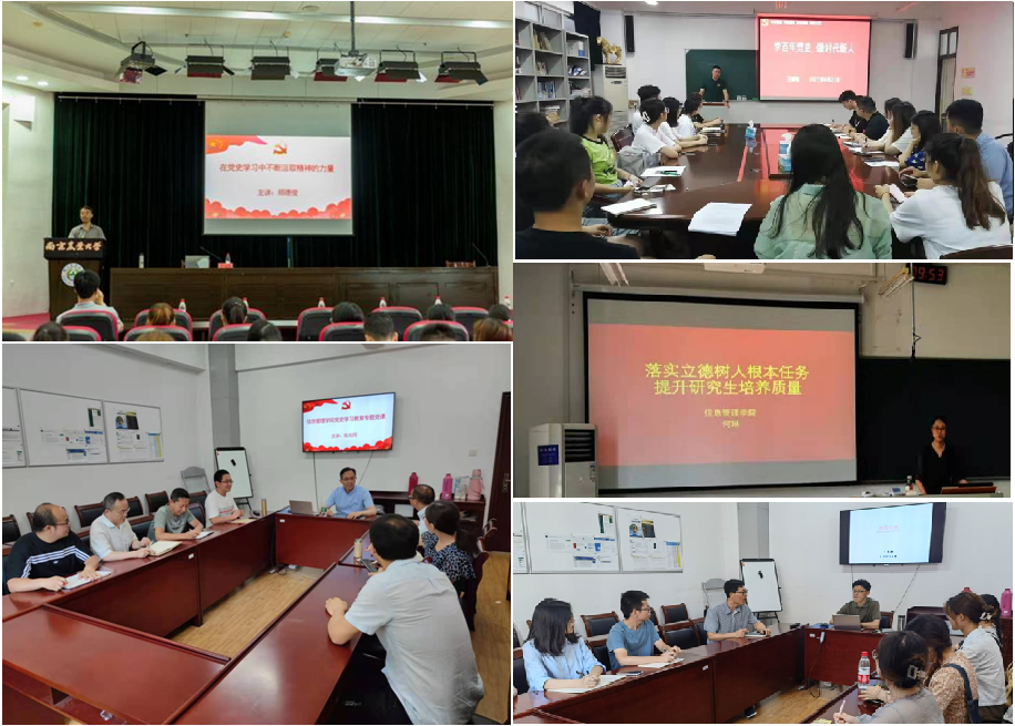 为推动党史学习教育深入开展,进一步引领师生党员学史明理、学史增信、学史崇德、学史力行,以昂扬奋进的姿态迎接建党100周年,按照信息管理学院党委关于党史学习教育的工作部署,学院全体党员领导干部近期结合党史学习教育和工作实际分别讲授了思想深刻、富有实践指导意义的系列专题党课。